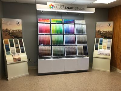 We offer a flippable 8 panel Sherwin Williams display, 3 Hallman Lindsay displays and a color catalog from Benjamin Moore to help you choose which paint color & brand is right for you!
